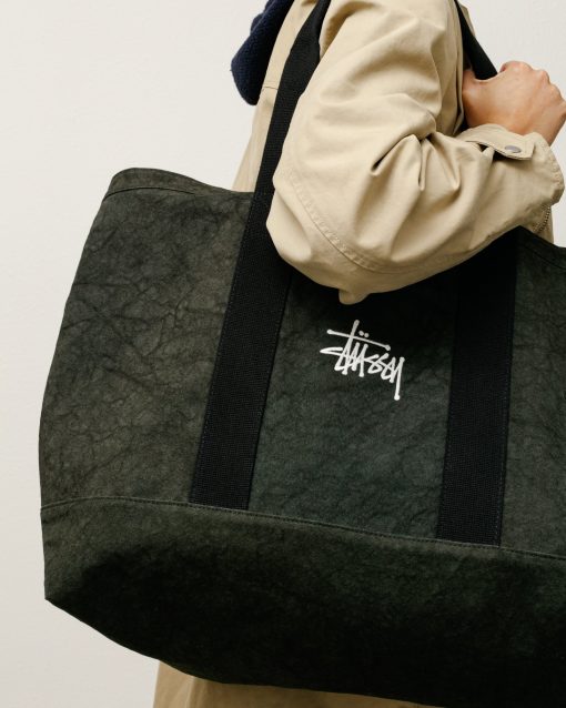 Oversized tote bag in 12oz cotton canvas. Features a large central compartment with an interior drop pocket. and two exterior pockets. St??ssy basic logo embroidery at side.