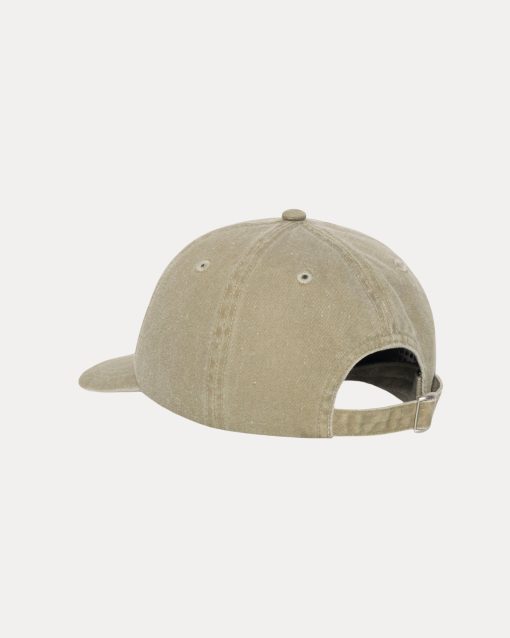 Low profile six panel cap in pigment dyed washed cotton twill. St??ssy basic logo embroidery at the crown.