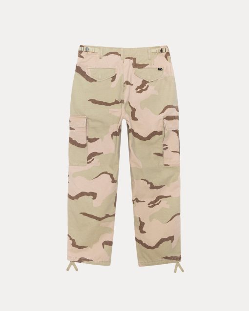 Relaxed fit cargo pant in washed cotton ripstop. Features flap pockets. adjustable waist tabs and flat cotton drawcords at the cuffs. St??ssy stock flag label at rear pocket.