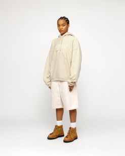 Relaxed fit hooded sweatshirt in a heavy 15.8oz cotton blend. Stüssy arch logo reverse applique at the front with embroidered edges.