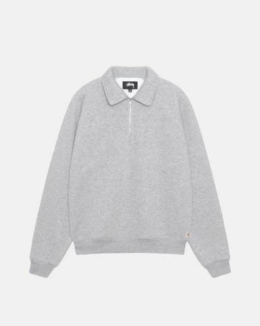 Half-zip sweatshirt in a garment washed. heavyweight 535gsm cotton blend fleece. Relaxed. slightly cropped fit with a raglan sleeve. brushed interior and Stüssy authentic workgear label at the side seam.