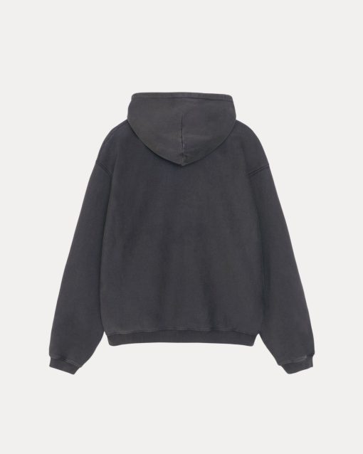 Relaxed fit zip-front hoodie in a heavy 500gsm cotton blend with a faded wash. Stüssy arch logo across the front.